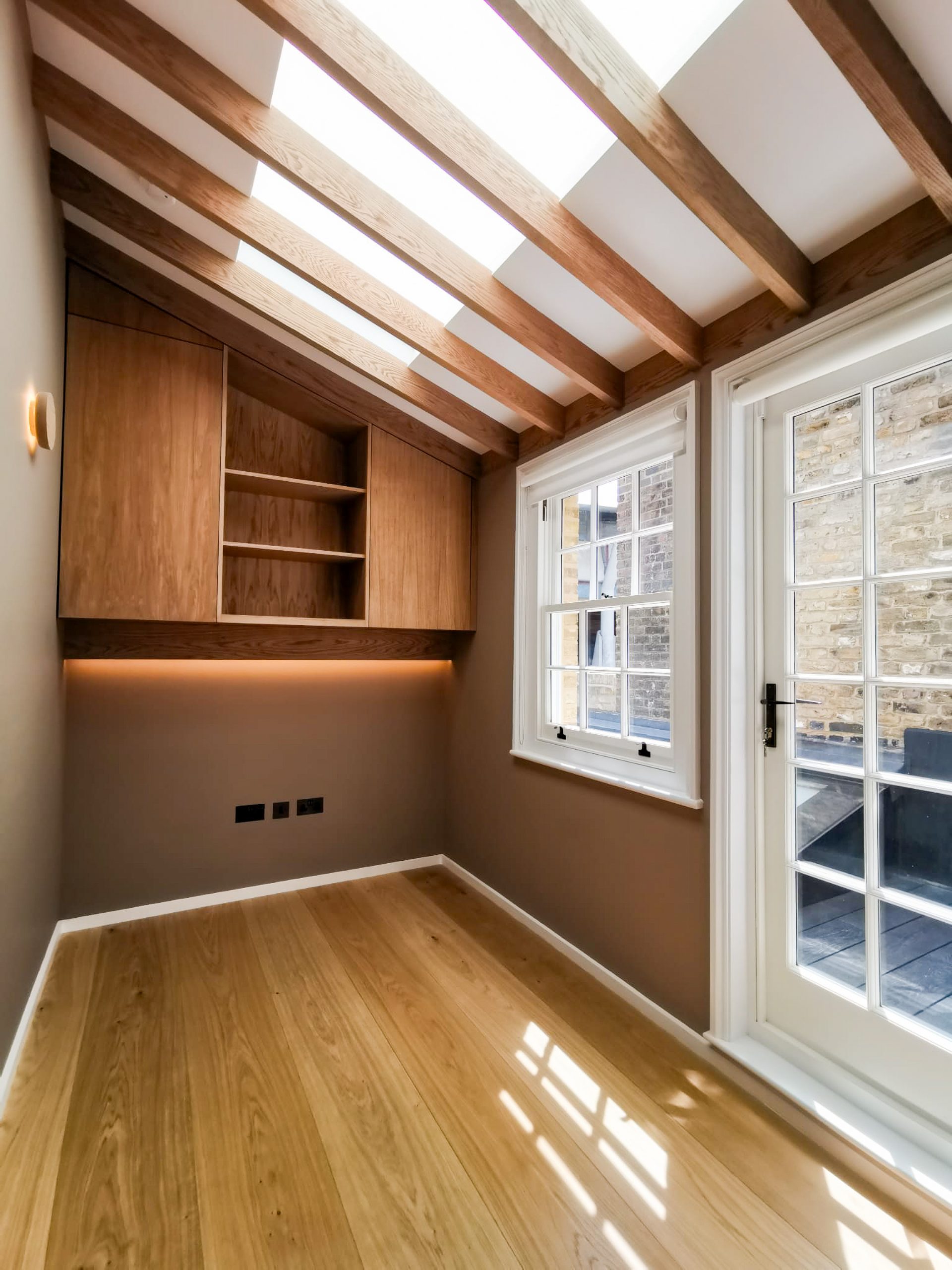 A comprehensive refurbishment of a listed property that seamlessly blends contemporary luxury with historic character. The project features a bespoke basement construction and a complete interior transformation, creating an elegant multi-level open-plan living environment within a compact site in SE1, Central London.